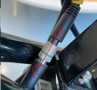 2. De stekkers met de gele ring nummer 3 even los te koppelen door ze door middel van de 2 stalen ringen van elkaar af te draaien.